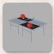 Auf den Bildern ist ein Tischtennistisch mit Fledermäusen und Ballspielen