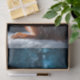 Weihnachten Dekoupage/Kunsthandwerk/Gewebepapier mit einem Eichhörnchen auf einer sternenbedeckten Winternacht mit einer Weihnachtsmannmütze und einer Tüte Geschenke mit den Worten "Weltfrieden".