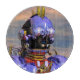 Titan cyborg aus Hyperion World mit seinem lebendigen, reflektierenden Chromkarosseriebild aus Metall in einer surrealen Umgebung, blauem Himmel und Wolken, Animationsrahmen aus dem 3D-Film Hyperion World. Künstlerisches, buntes und helles Science Fiction-Image in Blau, Rosa, Gelb, Weiß, Braun.Baldesign3d (c)