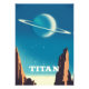 Titan & The ringed planet Saturn Vintag Style Space Art.