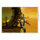 Künstlerisches, buntes und helles Science Fiction Bild in Gelb, Grün, Braun, Weiß. Titan cyborg aus Hyperion mit seinem lebhaften, reflektierenden Chromkarosseriebild in einer surrealen Umgebung mit Pyramiden, heiße Sonne, Wüste ähnlich einer ägyptischen Landschaft, Animationsrahmen aus dem 3D-Film Hyperion World . Es ist auch ein wunderschönes Geschenk für Weihnachten, Feiertage und besondere Anlässe.