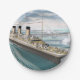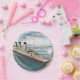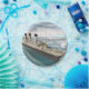 Berühmtes titanisches Schiff, das unter Eisbergen auf dem Wasser bis zum bewölktem Tag schwimmt
