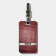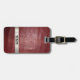 Imitate roter Reptil Leder Hintergrund mit Imitaten Titan metallischen Etikett. Monogramm-Initialen und Vorlagen, die für Sie auf der Vorder- und Rückseite erstellt wurden.
