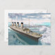 Berühmtes Titanic-Schiff, das bei bewölktem Tag zwischen Eisbergen auf dem Wasser schwebt