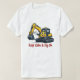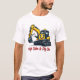 Cooles, lächelndes, gelbes Baggermaskottchen-T-Shirt mit dem Slogan Keep Calm and Dig On. Ideales Geschenk für Bauarbeiter, Schwermaschinenbediener und Baggerfans. Komfortables, alltägliches Casual-Shirt!