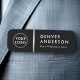 Schwarze Namensmarke mit Ihrem individuelle Name und Titel. Der Name und das Logo werden durch einen silbergrauen Farbverlaufsunterscheider getrennt. Eleganter und eleganter Stil. Laden Sie Ihr eigenes Logo hoch und erstellen Sie Namensmarken für Ihr Unternehmen oder Ihre Veranstaltung. Mit dem Designwerkzeug können Sie Schriftart- und Hintergrundfarben ändern.