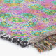 Ein lebendiges Kaleidoskop von Farben bildet ein kompliziertes symmetrisches Muster, dominiert durch die Farbtöne Rosa, Blau, Grün und Gelb. Das Design schafft einen faszinierenden Effekt, der an Mandalas oder Farbglas erinnert.