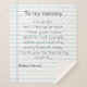 Capture the magic of her very first Mother's Day with this sentimental "To My Mommy" letter blanket. This unique design mimics a nostalgic lined notebook page, featuring a touching message from the little one that will melt any mom's heart.