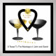 Das Poster "Toast To Uns", ein wunderbarer Heiratsgeweih, für Seeleute. Zwei Gläser, um sich gegenseitig zu toast, mit einem schwarzen Herz, das "Toast To Uns" sagt. Und die Worte "Seelenverwandte" am unteren Ende des Designs. Schwarz/Gelb/Blumen-Design.*