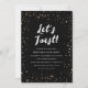 Moderne, stilvolle Silvesterabend-Party Einladungen mit "Let's Toast" in einem stilvollen Drehbuch-Schriftart, vergoldeten Sternrahmen und goldgestreiftem Design auf der Rückseite. Personalisieren Sie die trendigen Feierlichkeiten mit Ihren individuellen Party-Informationen, um eine atemberaubende Einladung Ihre Gäste Liebe!