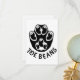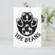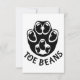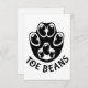 Eine schwarze Pfote mit schwarzen Bohnen als Zehen, mit dem Text "Toe Bohnen" unter der Pfote.