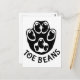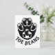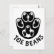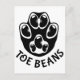 Eine schwarze Pfote mit schwarzen Bohnen als Zehen, mit dem Text "Toe Bohnen" unter der Pfote.