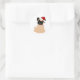 Runde Aufkleber mit dem niedlichen, kuscheligen, bezaubernden Mops Toby zeigen stolz seinen Urlaubssinn mit seiner Weihnachtsmannmütze und seinem Bonbonspielzeug.