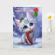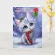 Ein hübsches, mit Augen Kätzchen liegt unter dem Misteloe - eine reizvolle Art, mit Ihrer Tochter und Ihrem Schwiegersohn gemütliche Urlaubswünsche zu teilen.