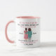 Feiern Sie die besondere Reise einer Tochter, die Mutter wird, mit diesem herzlichen Design. Perfekt für den Muttertag, hebt dieser Becher die Liebe, Bindung und Aufregung beim Willkommen einer neuen Generation hervor. Fügen Sie einen Namen oder ein Datum hinzu, um es für die werdende Mutter einzigartig zu machen. Ein bedeutungsvolles Andenken, um die Mutterschaft und familiäre Verbindungen zu ehren.