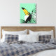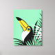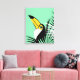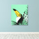 Tropische Kunst der Tierwelt in flacher Farbe des Toco Toucan unter Palmenfronten auf aquamarinem Hintergrund