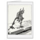 Ein Skelett benutzt Stelzen, um über ein mittelalterliches Manuskript zu gehen. Grafik durch Joseph Sattler.