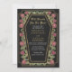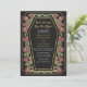 Machen Sie eine kühne Aussage ewiger Liebe. Diese gotische Hochzeitsfeier mit dem Motto "Till Death Do Us Part" in einem särgerlichen Rahmen, der mit Dornen, Rose und Goldakzenten auf schwarzem Hintergrund verziert ist und auf der Rückseite des Einladens einen eigenen QR-Code besitzt. Ideal für eine lustige romantische Feier! Personalisieren Sie Text, Schriftart und Hintergrundfarbe, um Ihre Designeinstellungen Anzug zu erhalten. Matching Items in unserem Shop für ein komplettes Party Thema. Bitte beachten Sie, dass das Gold auf der Einladung KEINE echte Folie ist und in flachen Farben gedruckt wird.