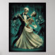 Waltz des Todes. Ein männliches und weibliches Skelett in glamourösen Kostümen aus dem 19. Jahrhundert tanzt Walzer.