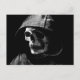 Schwarz-Weiß, unheimliches Foto, das den Tod darstellt. Es ist mit einer Skelettfigur (Schädel) in einem schwarzen Umhang mit Kapuze bekleidet. Foto von George Hodan.