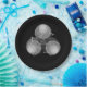 Ein Biogefährdung-Symbol in Grauton. Der innere Kreis wurde durch einen schwarz-weißen Strang ersetzt. An der Kreuzung des Symbols wurden drei schwarze Schädel platziert. In der Mitte befindet sich ein schwarz-graues Strahlungssymbol.