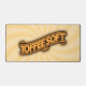 Eine Schreibtischmatte mit ToffeeSoft's Logo darauf! Genießen Sie die Farben von Kaffee und Schokolade, während Sie am Computer sind.