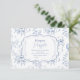 Mit unserer Toile De Jouy Bow Baby Shower Diaper Raffle Enclosure Card fügen Sie Ihrem Baby-Duschbad eine elegante Touch hinzu. Diese bezaubernde Karte zeigt das klassische Toile De Jouy-Muster und präsentiert faszinierende Pastoralszenen, die Ihrem Fest ein Gefühl von Eleganz und Anmut vermitteln. Der zarte Bogen-Akzent fügt sich harmonisch in das Dekor ein und ergänzt die einladende und thematische Gestaltung. Diese Umschließungskarte wurde entwickelt, um sich nahtlos in Ihre Babydusche zu integrieren und lädt die Gäste zur Teilnahme an einer köstlichen Windelverlosung ein. Die Karte enthält eine klare Anleitung, wie die Tombola funktioniert, die die Gäste dazu anhält, im Gegenzug für eine Chance, einen Sonderpreis zu gewinnen, ein Paket Windeln mitzubringen. Die Diaper Raffle Enclosure Card, die auf hochwertigen Cardstock gedruckt wurde, verbessert nicht nur die Dekoration der Babydusche, sondern dient auch als funktionales Element, das Verlobung und Spaß unter den Gästen fördert. Das zeitlose Design macht es für jede Art von Babydusche geeignet, von eleganten Ansammlungen bis hin zu skurrilen Festen. Mit dieser exquisiten Umzäunungskarte können Sie Ihre Liebsten noch unvergesslicher in die Begrüßung der neuen Ankunft eintauchen, während Sie Ihre Veranstaltung mit einer Touch Vintagen Charmes bereichern.