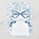 Toile De Jouy Blue Bow Babydusche Einladung