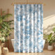 Refresh your bathroom decor with our new shower curtain design, featuring an elegant Toile-de-Jouy Chinoiseries blue floral pattern beautifully framed on a custom white background.