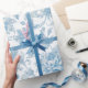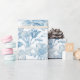 Elevate your gift wrapping with our new wrapping paper design featuring an elegant Toile-de-Jouy Chinoiseries blue floral pattern, against a custom white background.
