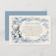 Elegante Toile de jouy Baby Shower Books für Babykarten. Ein hübscher Teddy-Bär mit blühendem Rahmen in blass staubblauem Blau auf einem hellen cremefarbenen Hintergrund. Ideal für eine französische Babydusche für einen Jungen oder ein Mädchen. Weitere Änderungen finden Sie unter Anpassen dieser Vorlage. Am unteren Rand sehen Sie "Gewollt, um dieses Design noch weiter zu anpassen? Klicken Sie auf das EDIT-Tool mit Design. Von dort aus können Sie einige der Schriftart & einige Farbkombinationen ändern, Dinge verschieben oder löschen, was Sie brauchen. Ein wenig Generativität in Kombination mit handgezeichneten Elementen