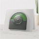 Ein öffentlicher Türmechanismus aus Metall, der auf einem abgeschiedenen, weiß strukturierten Hintergrund grün zeigt