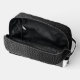 Entdecken Sie unsere stilvolle, schwarze Ledertoiletasche mit einer kompakten, texturierten Oberfläche mit kleinen, hochgehobenen Stoßstangen für ein raffiniertes Aussehen. Die glänzende Oberfläche und die dezente Gradientenbeleuchtung heben das handwerkliche Können hervor und machen es zum perfekten Reisezubehör.