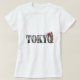 Großer schauender Entwurf für Tokyo. Innerhalb der Buchstaben sind die Skyline der Stadt mit der Flagge des Landes und einem Geisha-Mädchen. Fügen Sie Ihrer Reisesammlung hinzu. Versuchen Sie verschiedene Hintergrundfarben und fertigen Sie besonders an