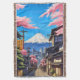 Eine kleine Tokyo Street mit Blick auf den Fuji in der Ferne. AI Anime Stil generierte Kunst.