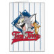 Tom und Jerry in einem niedlich bedrückten Design vor einem Baseballdiamanten mit sportlichem Schriftart.