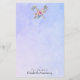 Weibliche Schreibwaren mit Ihrem personalisierten Namen. Ein typisch amerikanisches Aquarelldesign. Ein Tomahawk und ein Luke kreuzen sich, in ihrer Mitte ein Blumenstrauß mit hübschen rosa und gelben Blumen. Der Hintergrund ist eine weiche, lila blaue Aquarelltextur. Ein cooles amerikanisches Design mit einem boho hippy Flair.