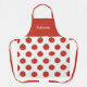 Eine Schürze mit Tomatenmuster und anpassbarem Text oder Namen auf rotem Hintergrund. Ein nettes Geschenk für einen Koch, einen Bauer oder ein Kind!