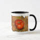 Ein Foto einer Tomate wird in einem dekorativen, bedrückten Hintergrund zusammengetragen.