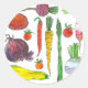 Ein heller und farbenfroher Aufkleber, der mit einer Gemüseernte dekoriert ist, darunter Tomaten, Karotten, Spargel und mehr, in Stift und Tinte gezeichnet und mit Aquarellfarben mit weißem Hintergrund gestrichen. Spaß für Ihr Gartenmagazin, Post, Crafting und mehr! Das Design stammt aus meinem Farbbuch "Lila's Garden: Ein Hütte Gartenfarbbuch, das auf Amazon zu finden ist.