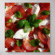 Sehr schönes Foto eines sehr köstlichen Salats. Tomaten- und Mozzarella-Salat. Eine großartige Lebensmittelfotografie schafft einen sehr schönen Hintergrund für viele verschiedene Produkte. Karo verwandte Produkte für einzigartige Geschenke mit diesem Foto.