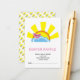 Niedlicher Vogel- und Sonnenblumenausweis für die Verlosung der Dusche. Diese attraktive Baby Shower Windschutzscheibe ist mit einem hübschen kleinen Vogel versehen, der auf einer flauschigen blauen Wolke steht, während die strahlend gelbe Sonne im Hintergrund hell strahlt.