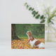 Ein niedlicher kleiner Hund bellt ein Eichhörnchen an