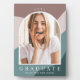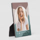 Erschaffen Sie einen unvergesslichen und einzigartigen Abschluss-Sake mit dieser Foto-Plakette mit einem vertikalen oder porträtorientierten Foto in einem einzigartigen Gewölbe-Layout, auf einem Hintergrund von Bio Wavy Streifen in den Schattierungen von Wald grün und Wüstenton. Darunter erscheint neben Ihrer Schule oder Uni "Graduate". Personalisieren Sie mit Ihrem Abschluss Jahr gebogen über die Spitze.