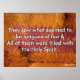 Faktische Verse: Sie sahen, was scheinbar Zungen von Feuer waren, die sich trennten und auf jedem von ihnen zur Erholung kamen. Alle von ihnen waren vom Heiligen Geist erfüllt und fingen an, in anderen Zungen zu sprechen, wie der Geist sie ermöglichte. Rechtsakte 2:3-4