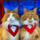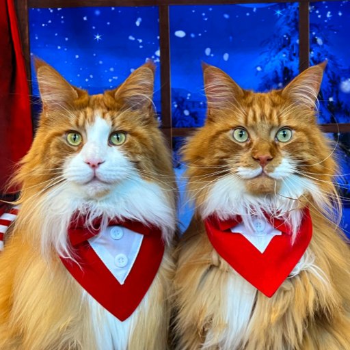 Familie und Freunde werden diese farbenfrohe Karte mit Tony und Teddy Liebe finden, die festlich und regal für den Urlaub aussieht. Diese Maine Coon Brüder werden ihr Herz wärmen.