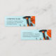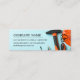 Eine lebendige Mini-Visitenkarte mit einem passenden Set an beruflichen Tischlerwerkzeugen mit türkisblauem Hintergrund. Es bietet einen Platz für Ihren einzigartigen Firmennamen und Informationen, zusätzlich zu einem Ort, um Ihr eigenes Firmenlogo hochzuladen. Auf der Rückseite ist Platz für Ihre Dienstleistungen in Kugeln angeboten.