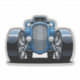 Hyper-stylized front-view toon hotrod with massive wheels, electric-blue shine, bold grille and powerful low-angle stance for a dynamic monster cartoon car look.