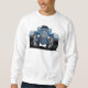 Hyper-stylized front-view toon hotrod with massive wheels, electric-blue shine, bold grille and powerful low-angle stance for a dynamic monster cartoon car look.