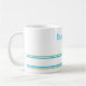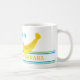 Eine Tasse für Ihre Zuhause oder Ihr Büro, die Sie mit jedem beliebigen Namen personalisieren können. Es ist mit Ihrem Namen in Türkis, eine große gelbe Banane und die Worte TOP BANANA, mit blauen und grünen Streifen über und unter den Worten dekoriert. Spaß und gleichzeitig niedlich, geeignet für jeden. Warum nicht die beste Banane sein?